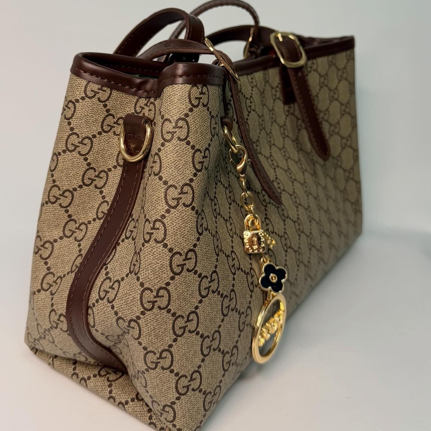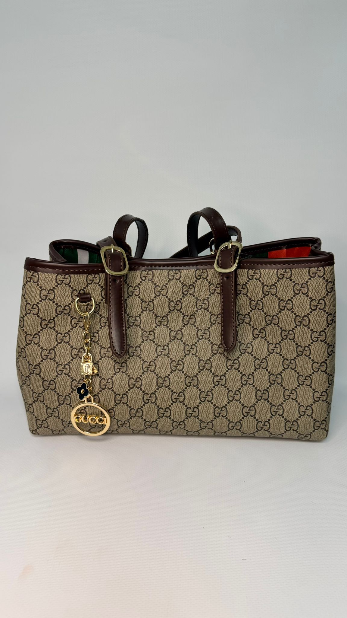 GG Amblem Orta Boy Çanta-KAHVE