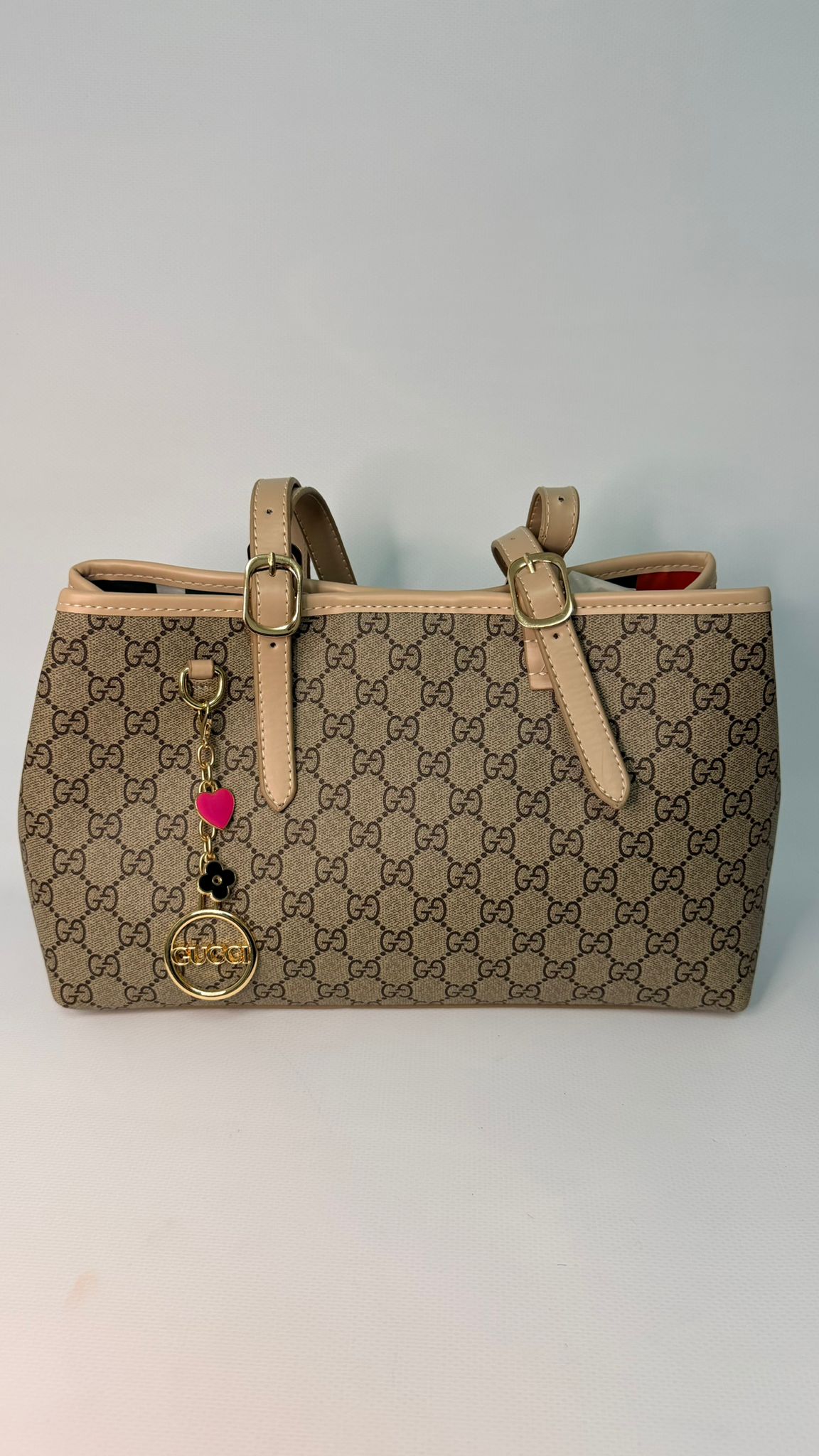 GG Amblem Orta Boy Çanta-KREM